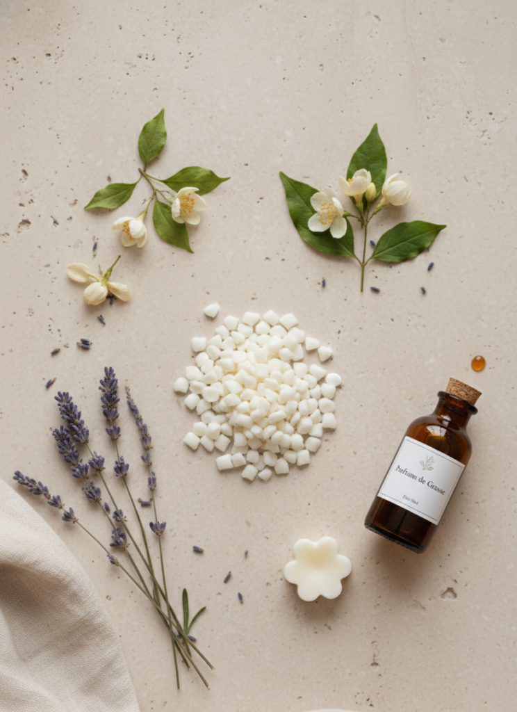 Nos fondants sont élaborés à partir de cires végétales et de parfums conçus à Grasse, berceau de la haute parfumerie, reconnus pour leur finesse et leur richesse.